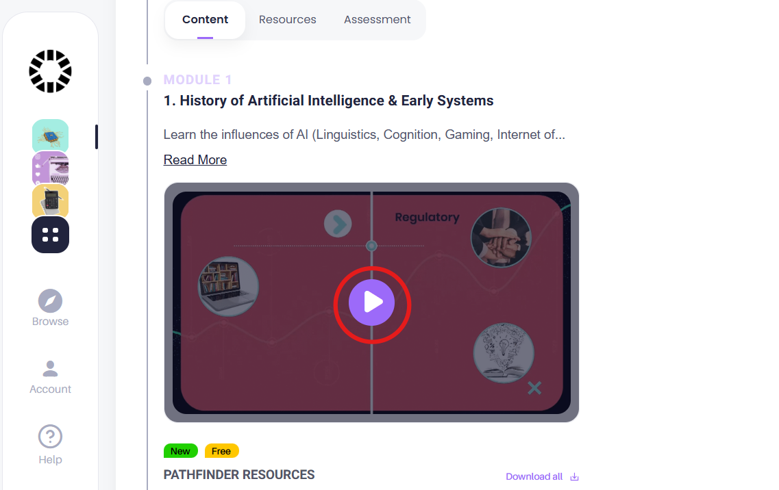 Once you log in, go to your course page and click on the "Content" section and then, click on the "Play" button on the video to watch.